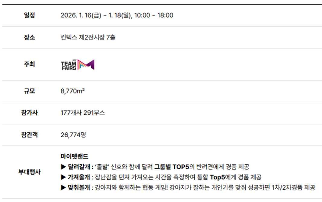 훨씬 중요할 때가 많습니다. 그런 점에서 마이펫페어 2026 송도는 단순한 박람회가 아니라 반려생활에