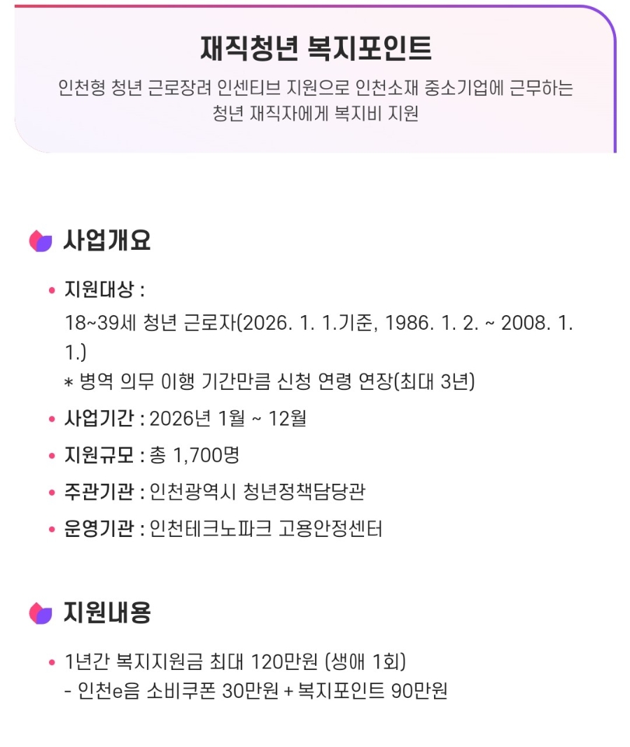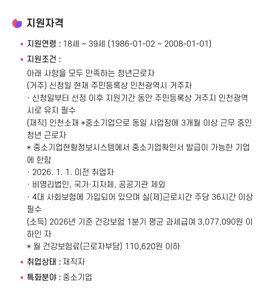 포인트는 일반 현금처럼 자유롭게 인출할 수 있는 것은 아니지만, 지정된 복지몰이나 제휴처에서 사용할 수 있기 때문에 체감상 현금과 크게 다르지 않습니다. 특히 온라인 쇼핑, 식비, 자기계발, 문화생활 등 다양한 영역에서 사용이 가능하기 때문에 활용도가 매우 높은 편입니다. 이 제도의 또 다른 특징은 “지속적 지원 구조”입니다. 한 번에 큰 금액을 지급하는 것이 아니라 일정 기간 동안 나누어 지급되기 때문에, 단기 소비가 아니라 생활비 관리에 도움이 되는 방식으로 설계되어 있습니다. 이는 단순 지원이 아니라 생활 안정성을 높이기 위한 구조라고 볼 수 있습니다. 또한 강제적인 사용 기한이 존재하기 때문에 소비를 미루기보다는 계획적으로 사용하는 습관을 만들 수 있습니다. 이 부분은 단점처럼 보일 수 있지만, 실제로는 불필요한 지출을 줄이고 필요한 곳에 집중적으로 사용하게 만드는 장점으로 작용합니다. 결국 재직청년복지포인트는 단순히 “주는 돈”이 아니라, 청년의 소비 구조를 개선하고 생활 부담을 줄여주는 정책적 도구라고 이해하는 것이 가장 정확합니다. 2026년 기준 지원조건과 신청방법 반드시 확인해야 할 핵심 기준 재직청년복지포인트는 조건이 명확한 대신, 하나라도 충족하지 못하면 신청 자체가 불가능합니다. 따라서 단순히 좋다는 이유로 접근하기보다는 본인의 상황과 정확히 맞는지 확인하는 과정이 반드시 필요합니다. 가장 기본이 되는 조건은 경기도 거주입니다. 주민등록상 주소가 경기도에 있어야 하며, 일부 경우에는 근무지 역시 경기도 내에 위치해야 합니다. 이 조건은 단순 형식적인 기준이 아니라 실제 적용되는 핵심 조건이기 때문에 반드시 확인해야 합니다. 연령 조건은 일반적으로 만 19세에서 34세 사이의 청년을 대상으로 합니다. 다만 정책에 따라 일부 연령대가 추가되거나 조정될 수 있기 때문에 모집 공고를 확인하는 것이 중요합니다. 재직 조건 역시 중요한 요소입니다. 현재 근로 중이어야 하며, 일정 기간 이상 재직 상태를 유지하고 있어야 합니다. 특히 단기 근로자보다는 안정적으로 근무하고 있는 청년을 우선적으로 선발하는 경향이 있습니다. 기업 조건도 반드시 확인해야 합니다. 이 제도는 중소기업 또는 중견기업 재직자를 대상으로 하며, 대기업이나 공공기관 근무자는 제외되는 경우가 많습니다. 이는 정책의 목적이 복지 격차 해소에 있기 때문입니다. 소득 기준은 건강보험료 기준으로 판단되는 경우가 많으며, 일정 수준 이하의 소득을 가진 청년을 대상으로 합니다. 따라서 본인의 급여뿐만 아니라 건강보험료 납부 금액도 함께 확인해야 합니다.