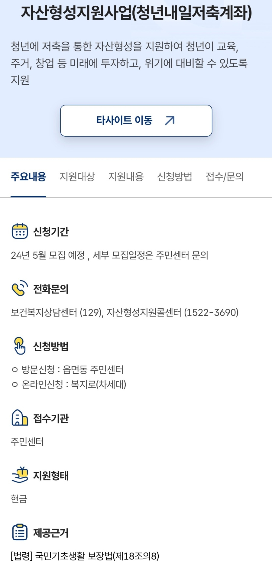 쉽게 말하면 내가 일정 금액을 꾸준히 저축하면 정부가 그 금액에 맞춰 추가로 지원금을 넣어주는 구조입니다.