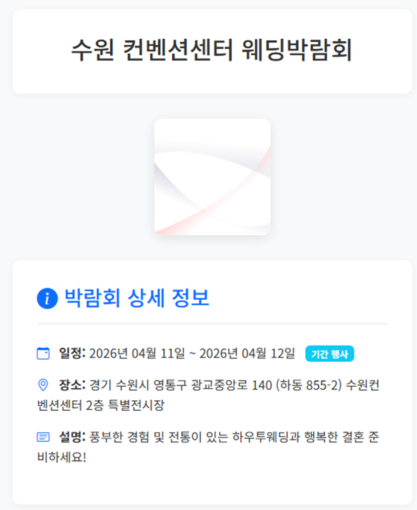 수원 컨벤션센터 웨딩박람회 - 2026년 04월 11일 ~ 2026년 04월 12일 | 웨딩박람회 정보